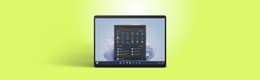 The Surface Pro 9 easily flips from tablet to laptop, deploying its adjustable kickstand to find the perfect angle, then snapping on the Type Cover (sold separately) for full-blown productivity. A 13-inch PixelSense display dazzles at 2880 × 1920 resolution. The Intel Evo Core processors give you laptop-grade performance while saving battery, and the Thunderbolt 4 ports let you attach monitors or fast SSDs. The Windows 11 Home offers touch-friendly apps alongside solid software.