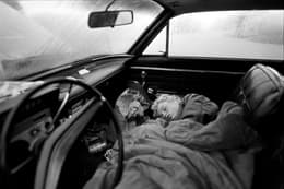 Poverty in America: a child sleeps in a car. From 1985 in Ventura, California. Photo by Stephen Shames.