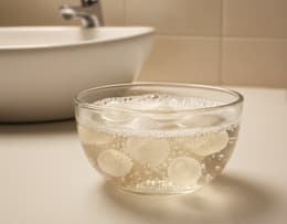 Giving silicone tips a quick soak for a fresh start — foam tips get a gentle wipe instead.