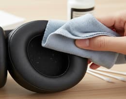 ✨ Gently wipe away dirt on the headphones' exterior with a microfiber cloth, focusing on tough-to-remove dirt spots.